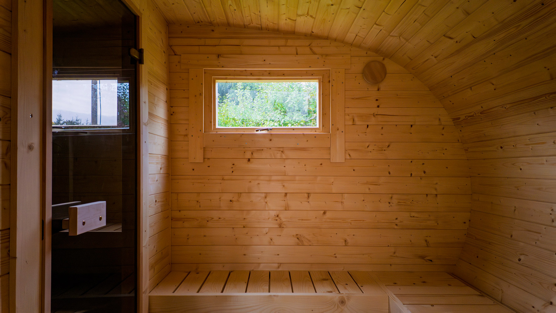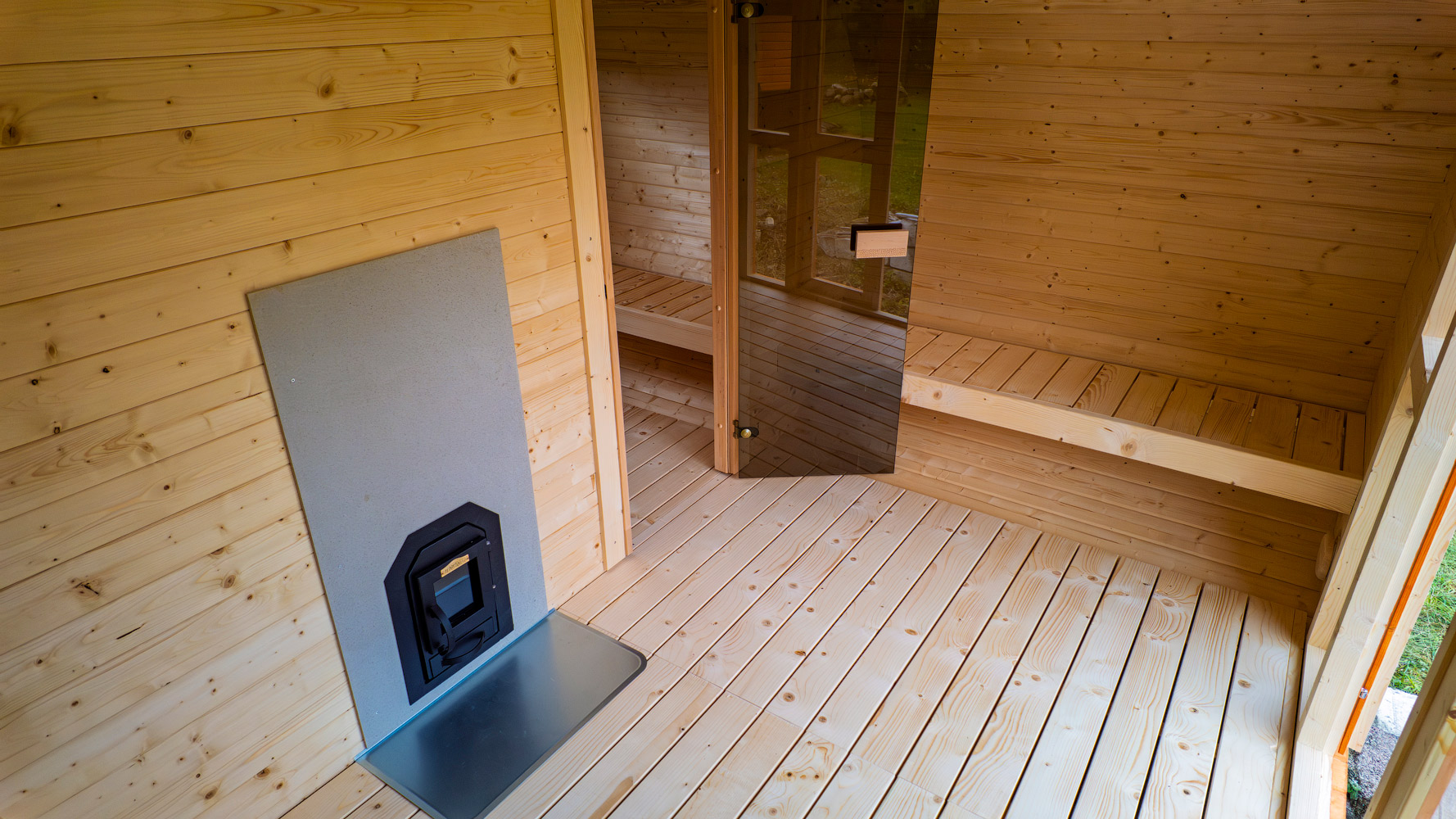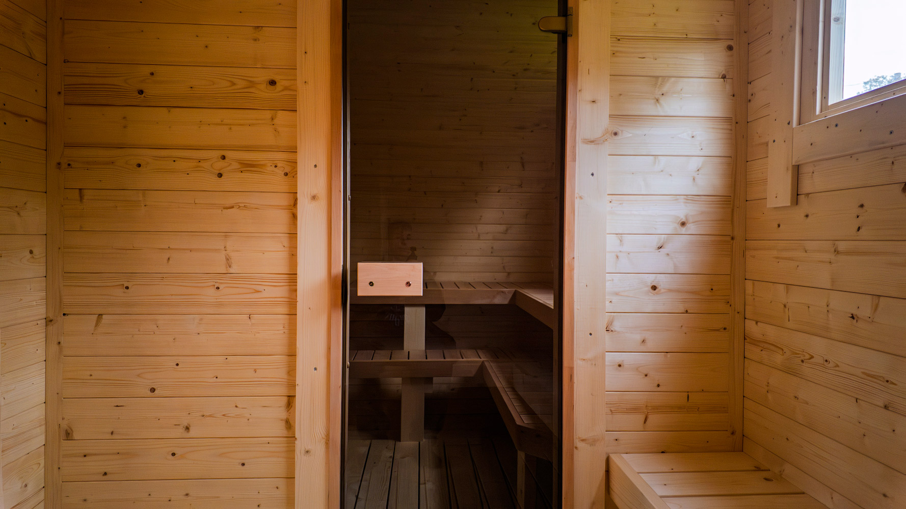 Can replace a full traditional sauna, as it includes three separate rooms: changing room, washing room, and steam room.